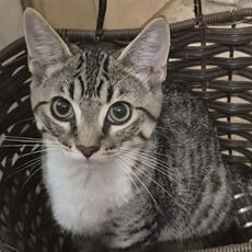 The perfect age, still full of kitten energy but already learning how to be a loving companion. Navi would do well as solo cat or with a feline friend.